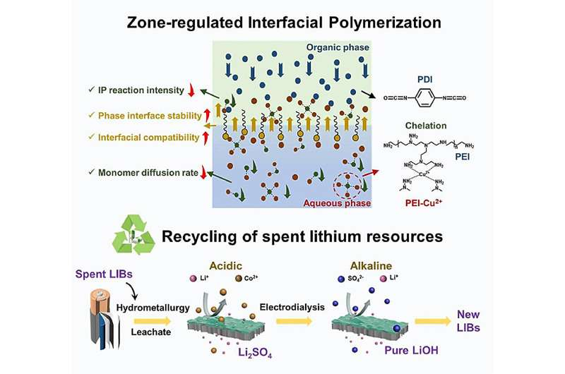 车能方程式讯 据外媒报道,在《Journal of Membrane Science》上发表的一项研究中,中国科学院过程工程研究所(IPE)研究团队提出新的区域调节界面聚合策略,旨在制造具有高分离选择性的耐酸碱纳米过滤(NF)膜,用于从废旧锂电池中回收锂。