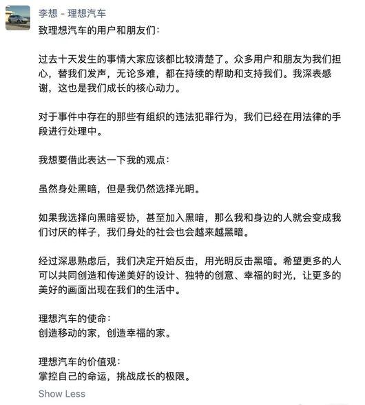 而十分微妙的是,本周随着舆论的不断发酵,李想选择在朋友圈接连发声,而不是他偏爱的主阵地微博。