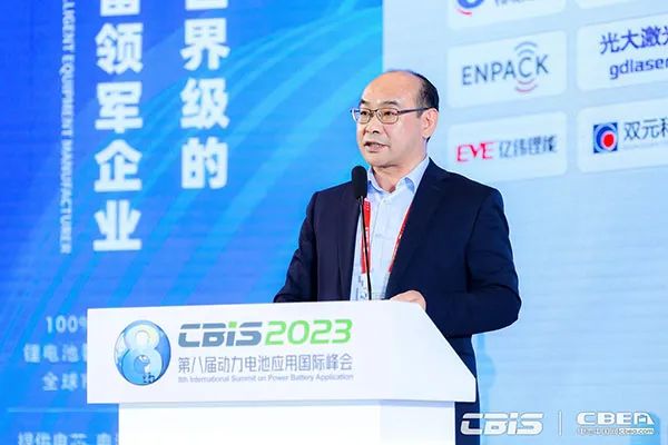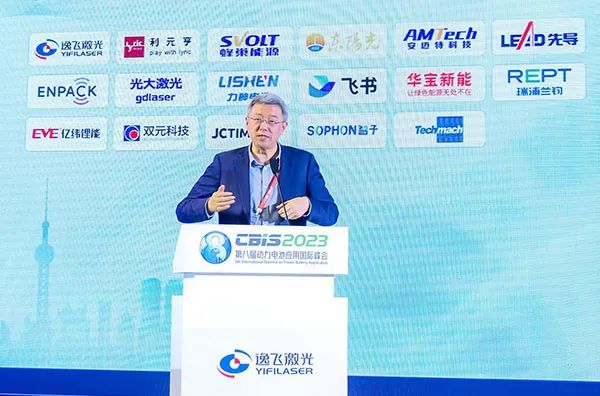 图为CBIS2023大会主席/武汉逸飞激光股份有限公司董事长吴轩作主旨发言