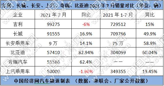 自主三强之外,“杀”进自主“潜力股”队列的比亚迪,稳坐该阵营的头部位置。与之形成鲜明对照的是,上汽乘用车7月的销量同比增速依然呈现负增长态势。