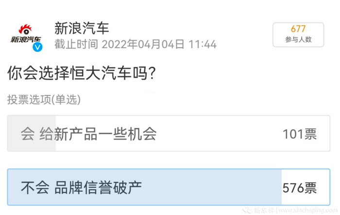 此外,根据此前相关媒体作出的调查,目前绝大部分消费者都并不会选择去购买恒大汽车产品,当中最大原因在于恒大在用户心中已经处于“信用破产”的状态。